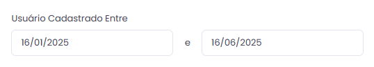 Para filtrar pela data, vá para a seção Usuário cadastrado entre, e selecione as datas inicial e final do cadastro. Neste caso, desde 6 meses atrás até o dia atual.